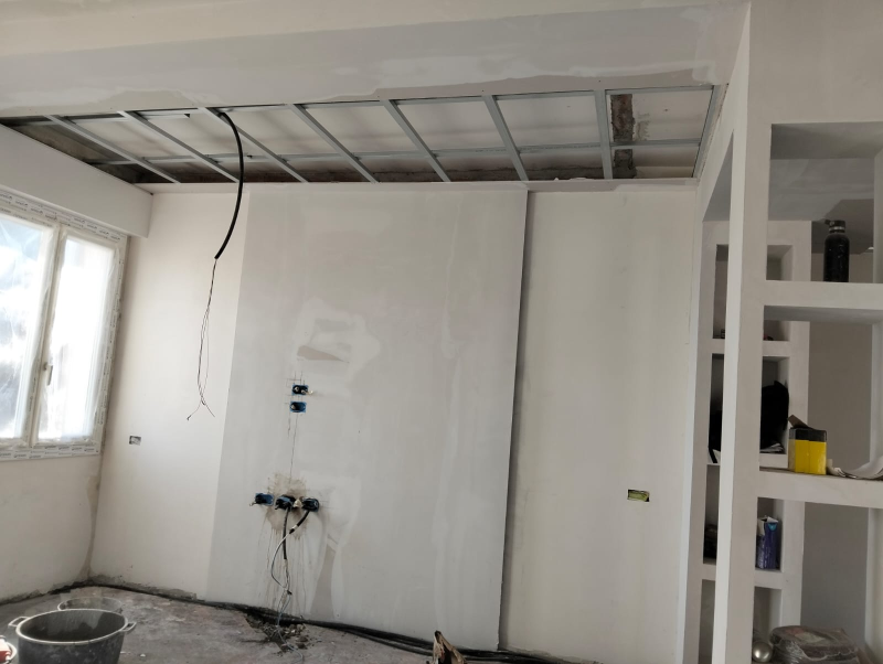 Con la nostra esperienza pluriennale, realizziamo lavori di controsoffitto in cartongesso che uniscono precisione, estetica e durata nel tempo. Ogni intervento è progettato per soddisfare le esigenze specifiche del cliente, assicurando lavorazioni pulite, sicure e perfettamente integrate con lo stile dell’ambiente.